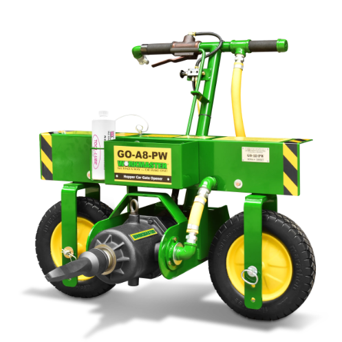 The GO-A8-PW, the flagship of our line, is an air-powered Gate Opener on a wheeled cart with pneumatically controlled pivot wheels (follow traveling gate or moving train), and manual height adjustment (accommodate varied-height capstans).